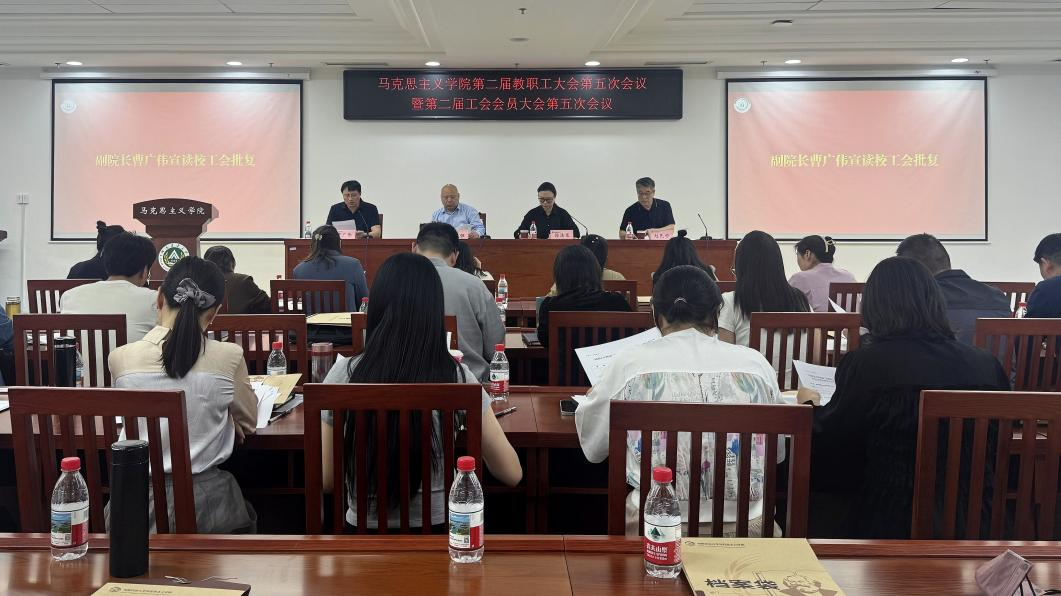 在图书馆302会议室召开第二届教职工大会暨工会会员大会第五次会议。会议由院党委副书记徐涤寒主持,班子成员、全体教职工参会。