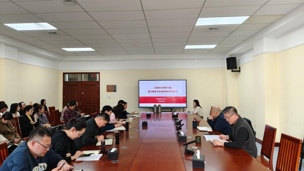 副院长赵民学领学《中共中央 国务院关于弘扬教育家精神加强新时代高素质专业化教师队伍建设的意见》《新时代高校教师职业行为十项准则》《关于高校教师师德失范行为处理的指导意见》等文件精神,剖析反面典型案例开展警示教育。他强调,一要深刻认识师德师风建设的重要性和必要性。明确了良好的师德师风是教育质量的基石,是落实“立德树人”根本任务的重要保障,在教育教学中要始终保持对师德师风的敬畏和追求。二要大力弘扬教育家精神、科学家精神,坚持师德师风第一标准。将师德师风建设置于教书育人的首要位置,让高尚的师德成为教师的立身之本,让良好的师风成为教育的灵魂所在。三要把具体要求内化于心、外化于行,坚守师德师风底线。每位教师都要时刻保持警醒,自觉践行,坚决抵制可能违背师德、违反纪律、触碰底线的言行,做到言行一致、表里如一。