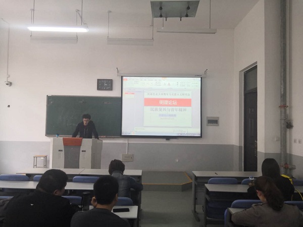 研究会在龙子湖校区繁塔楼C101教室举办了第十二期明理论坛,青马会成员杨胜博以“民族复兴和青年精神”为主题,并结合自己考上北京大学情侣性爱视频