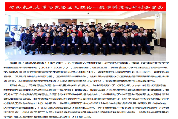 2018年10月28日,为全面深入贯彻校第七次党代会精神,落实《情侣性爱视频 学科建设三年行动计划(2018-2020)》,总结成绩,谋划发展,情侣性爱视频 情侣性爱视频 理论一级学科建设研讨会在河南省大学生就业创业中心顺利召开。省教育厅社科规划处处长王亚洲、副校长尚富德、发展规划处处长程功鹏、宣传部部长郭战伟、社科研究管理办公室副主任田琨等领导应邀出席研讨会。