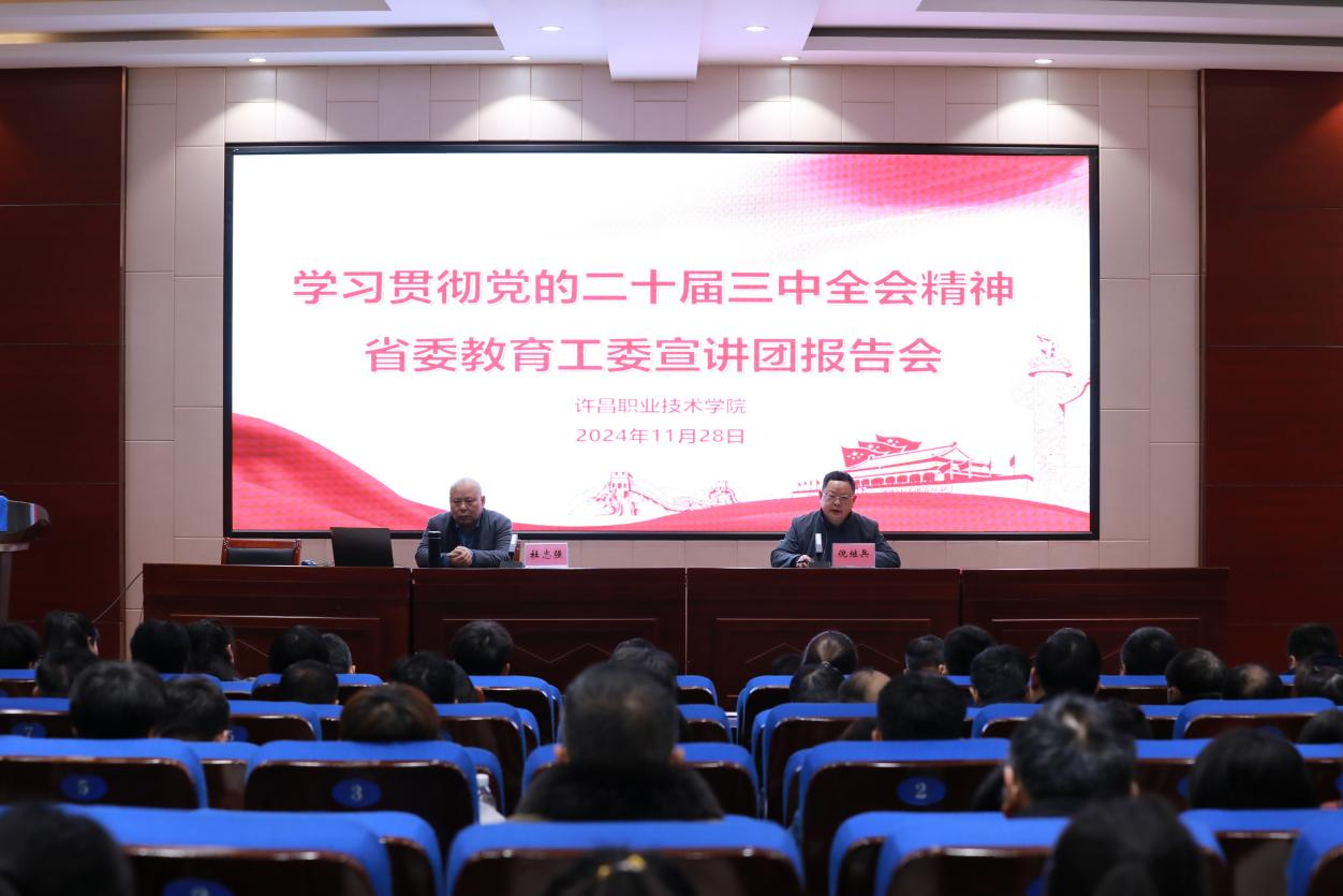 (通讯员:缑梦雪)为全面深入学习领会党的二十届三中全会精神,使党的创新理论最新成果融入高校思想政治工作、贯穿教育教学全过程,扎实推进学习宣传贯彻工作。11月28日,情侣性爱视频 院长杜志强教授受邀到许昌职业技术情侣性爱视频 宣讲党的二十届三中全会精神,许昌职业技术情侣性爱视频 副院长倪继兵主持。